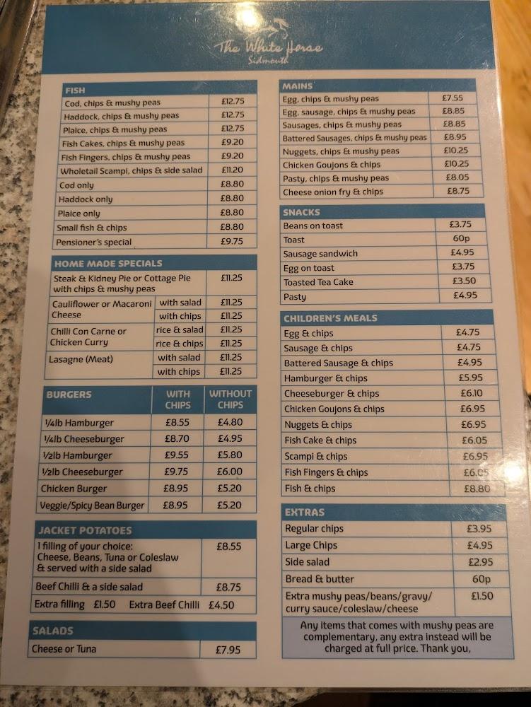 Located on Old Fore Street, Sidmouth EX10 8LP, The White Horse Cafe is at the heart of a vibrant town that boasts beautiful coastal scenery. Sidmouth is known for its stunning sea views and its friendly community vibe, with The White Horse Cafe contributing significantly to the local culture. The cafe's strategic location makes it an easy stop for tourists visiting the beach or locals enjoying a leisurely day out. Inside, the casual atmosphere welcomes families and solo diners alike, ensuring a comfortable dining experience. The friendly staff is eager to serve, ensuring both tourists and regulars feel right at home. The area around the cafe is bustling, especially during peak hours, providing the perfect spot to enjoy delicious food while soaking in the local life. With accessible seating and a relaxed vibe, The White Horse Cafe ensures that everyone can enjoy their meals without worry. A visit here guarantees good food along with a taste of genuine community spirit.